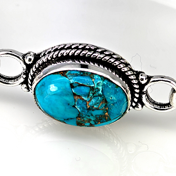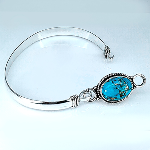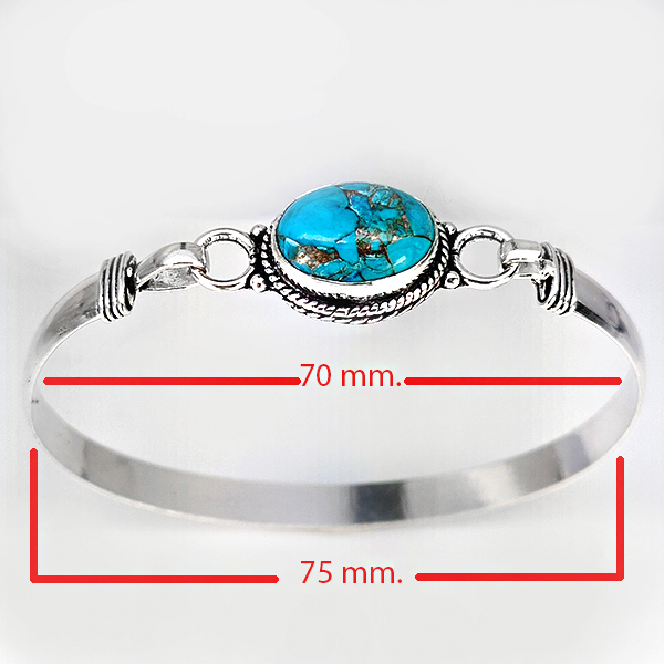 Natural Gemstone Oval Cabochon Shape 14.98 Grams Metal Silver Plated Fine Jewelry Bangle 6.5 Inch