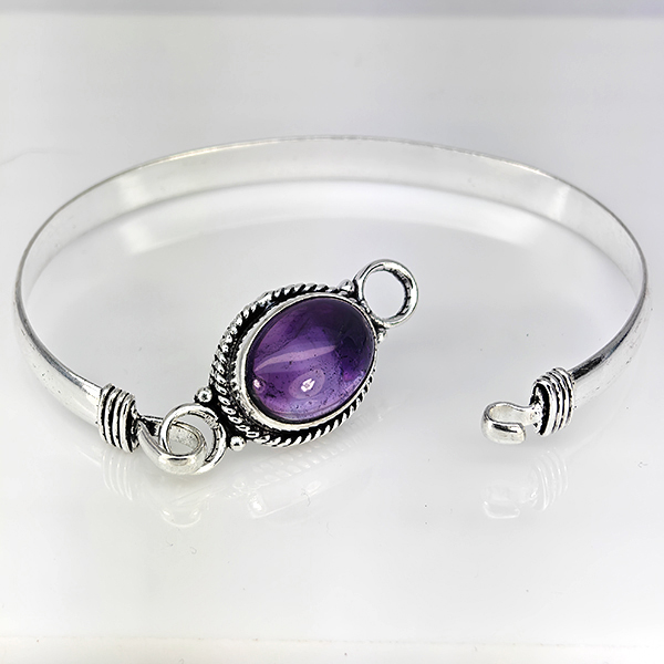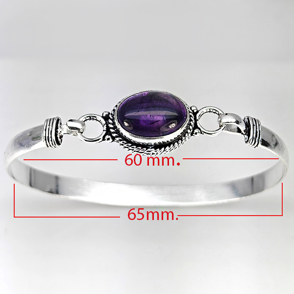 Natural Gemstone Oval Cabochon Shape 13.75 Grams Metal Silver Plated Fine Jewelry Bangle 6.5 Inch