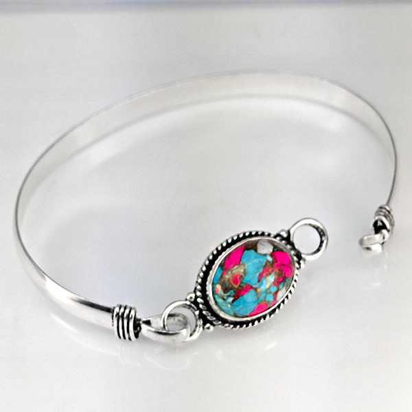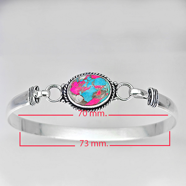 Natural Gemstone Oval Cabochon Shape 25.33 Grams Metal Silver Plated Fine Jewelry Bangle 7.5 Inch