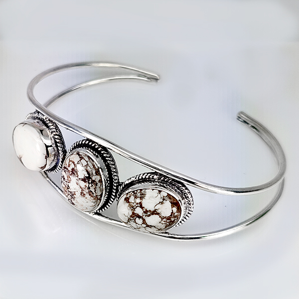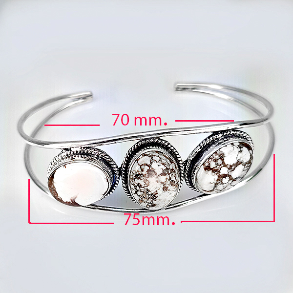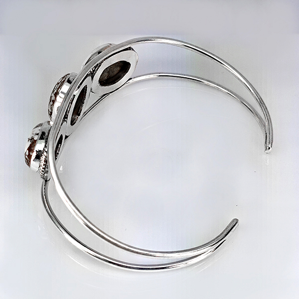 Natural Gemstone Oval Cabochon Shape 26.25 Grams Metal Silver Plated Fine Jewelry Bangle 7.5 Inch