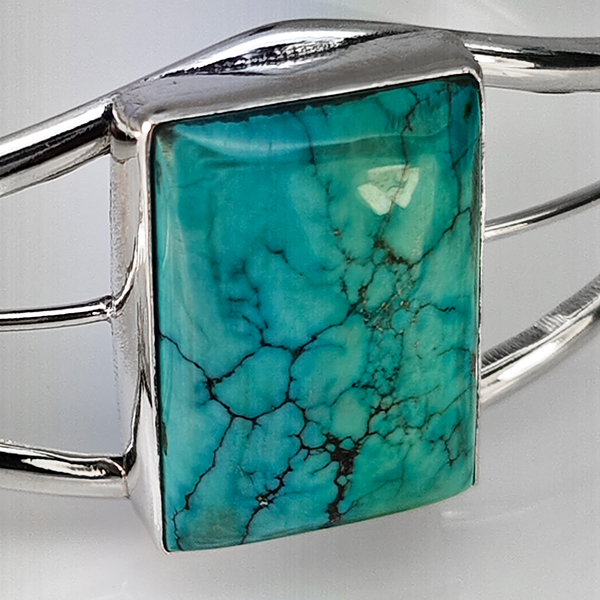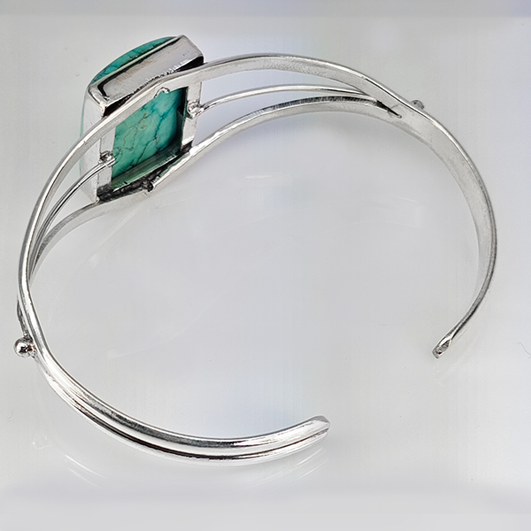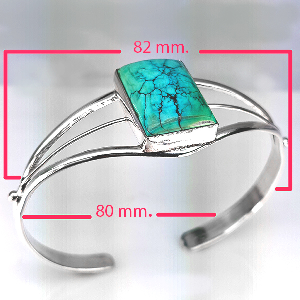 Natural Gemstone Baguette Cabochon Shape 24.68 G. Metal Silver Plated Fine Jewelry Bangle 7.5 Inch