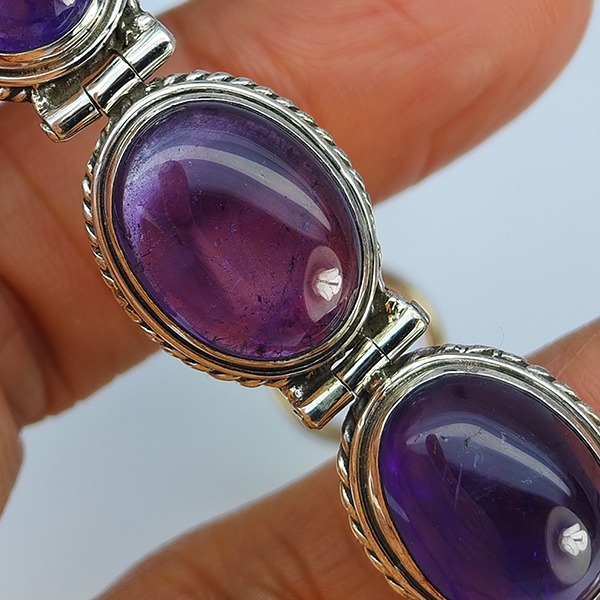 Natural Gemstone Oval Cabochon Shape 37.91 Grams Metal Silver Plated Fine Jewelry Bracelet 7.5 Inch
