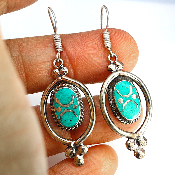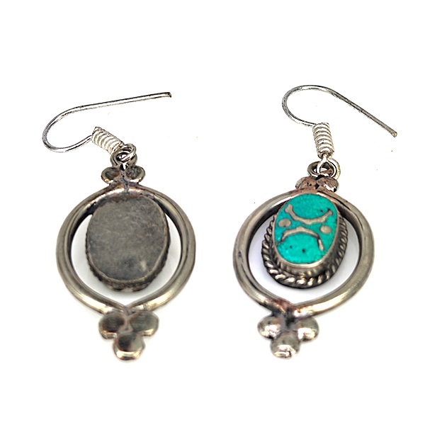 Natural Gemstone Oval Cabochon Shape Metal Silver Plated Fine Jewelry Earrings 8.06 Grams