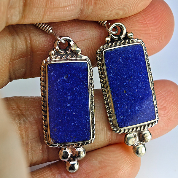 Natural Gemstone Baguette Cabochon Shape Metal Silver Plated Fine Jewelry Earrings 9.52 Grams