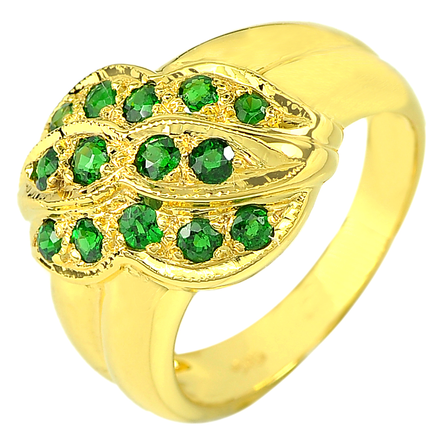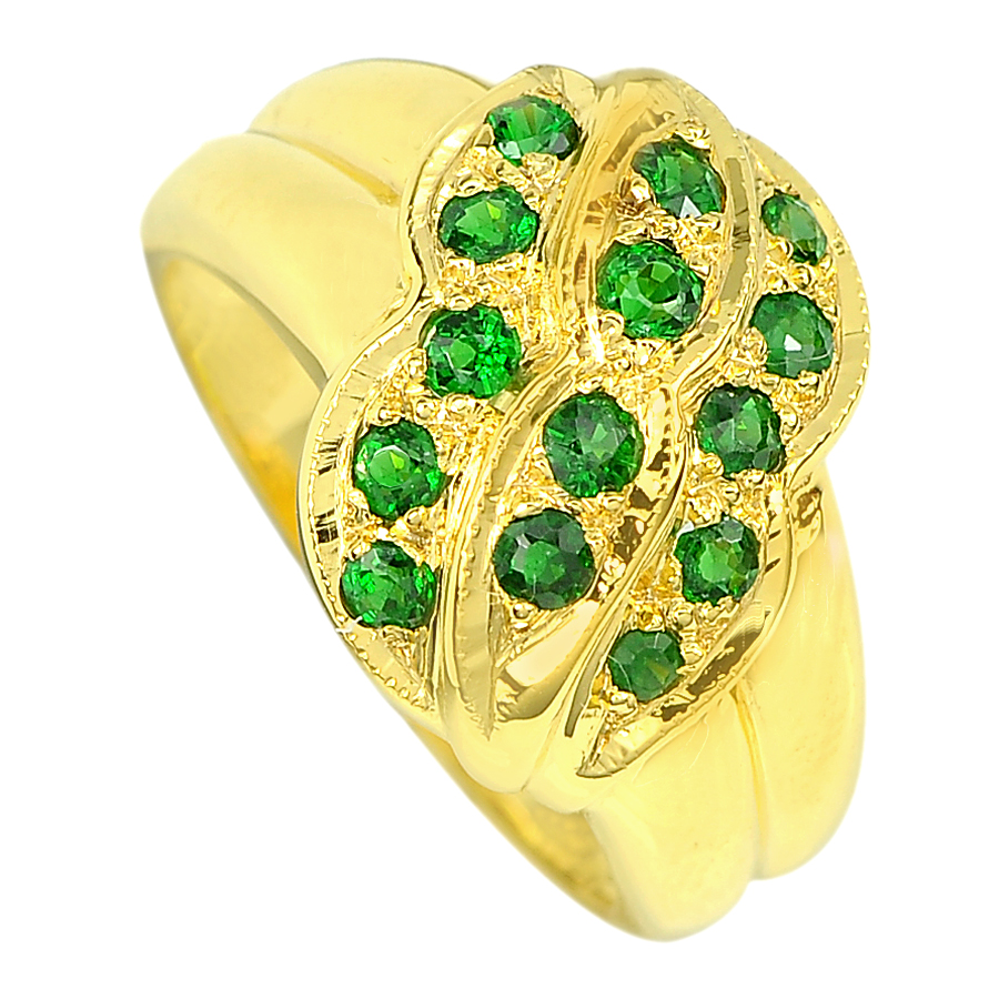 Natural Gemstone Green Tsavorite Garnet 14K Solid Gold Ring Size 7