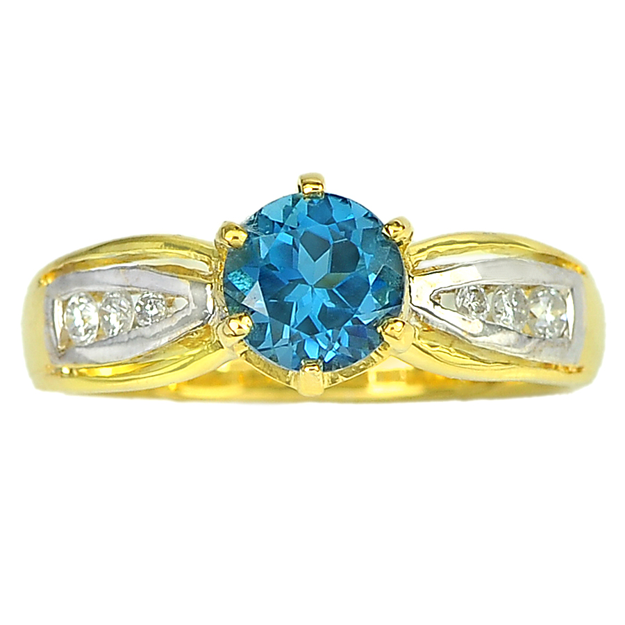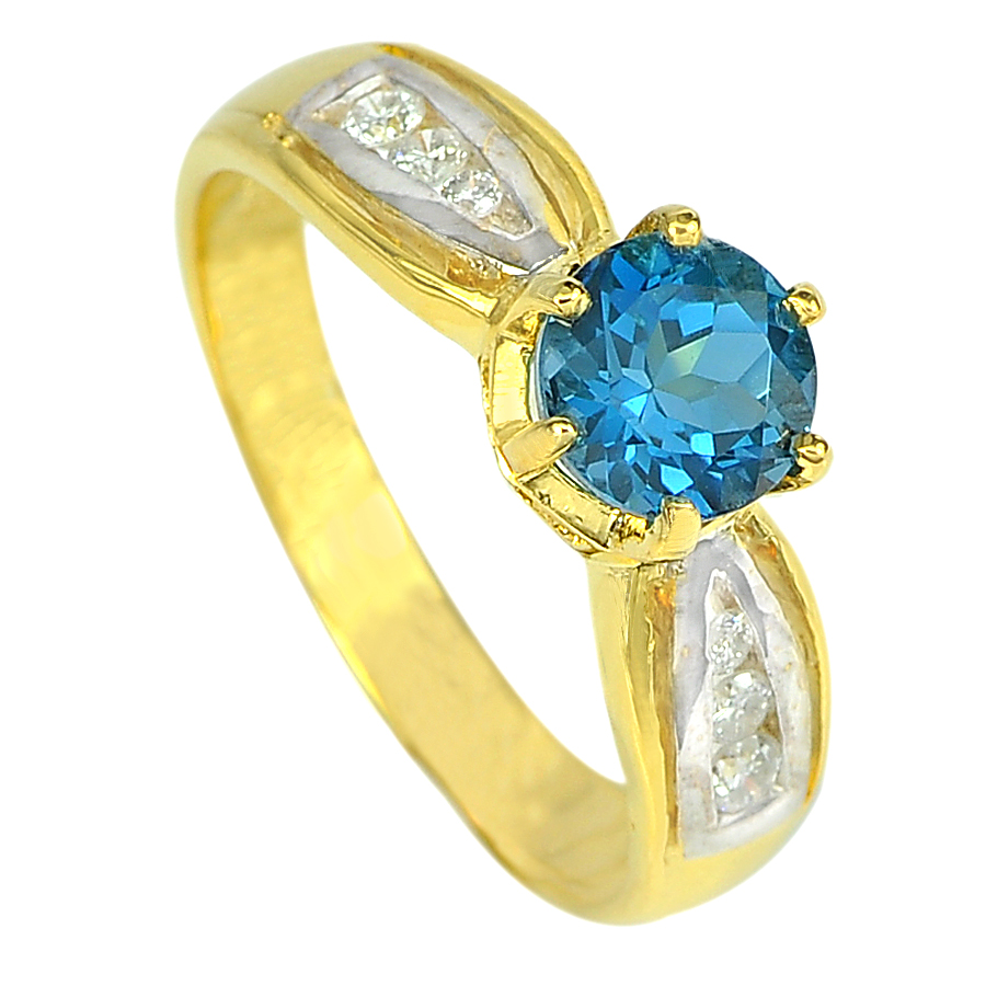 1.20 Ct. Natural Gemstone London Blue Topaz and Diamond 18K Gold Solid Ring