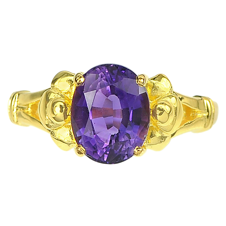 2.24 Ct. Natural Violet Amethyst 18K Solid Gold Ring Size 5