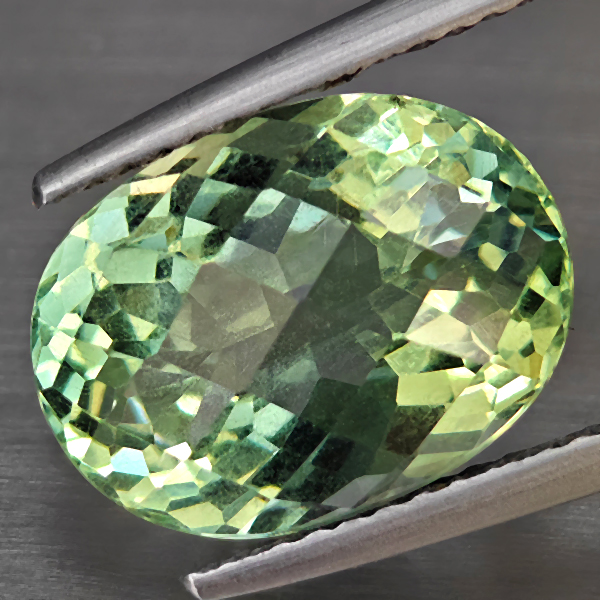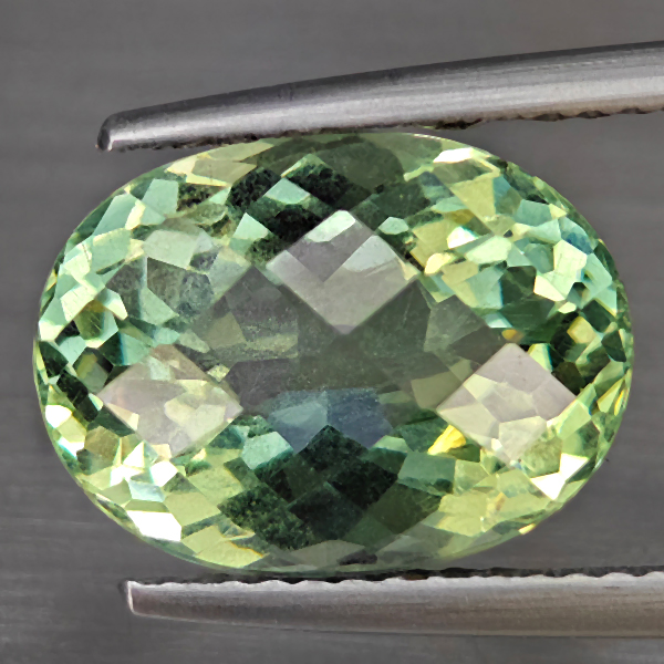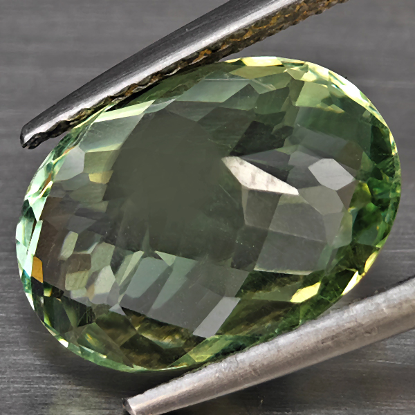 Natural Green Amethyst 4.82 Ct. Oval Checkerboard Cut 12.7 x 9.4 Mm Gemstone from Brazil