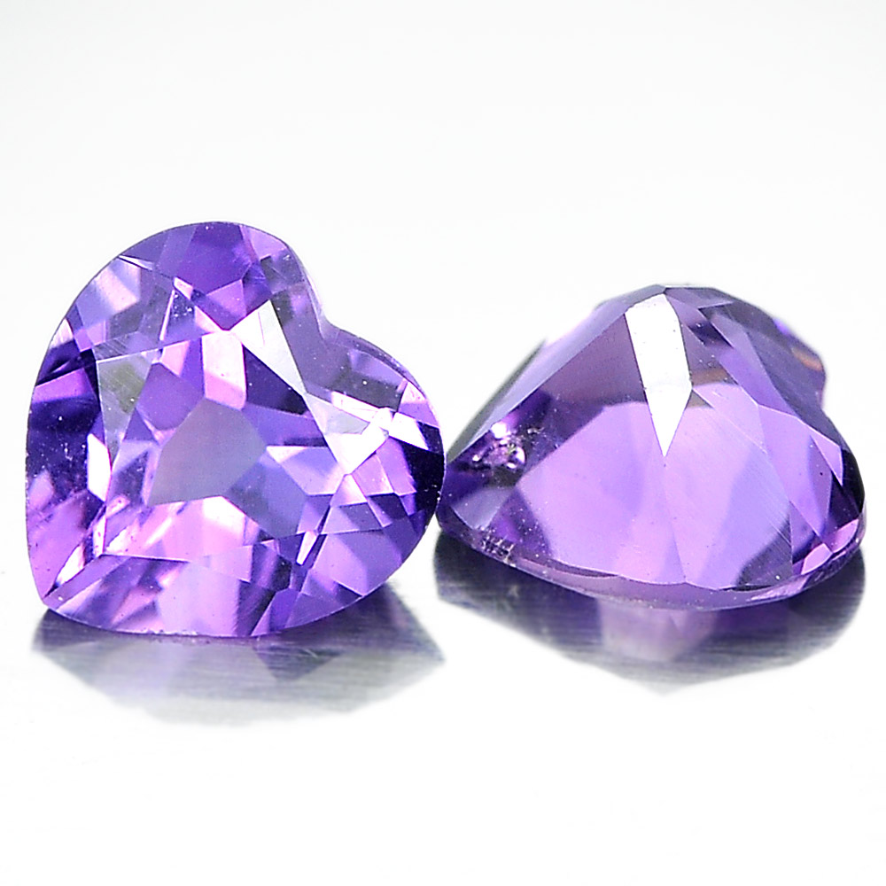 1.28 Ct. Pair Heart Shape 6 x 6 Mm.Natural Gemstones Purple Amethyst From Brazil