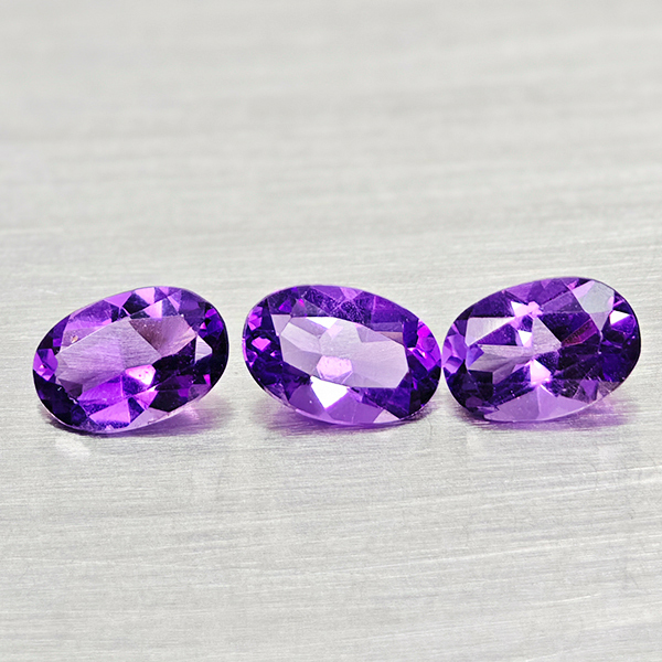 Natural Purple Amethyst 1.23 Ct. 3 Pcs Oval Shape 6 x 4.1 Mm Gemstones