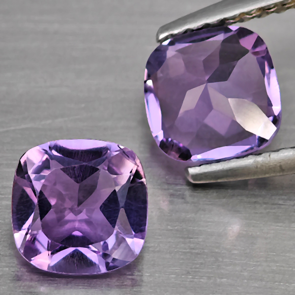Natural Purple Amethyst 1.39 Ct. 2 Pcs Cushion Shape 6.1 Mm Gemstone From Brazil
