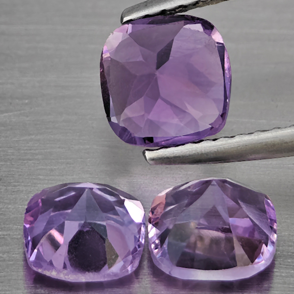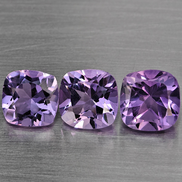 Natural Purple Amethyst 2.93 Ct. 3 Pcs Cushion Shape 5.9 Mm Gemstone From Brazil