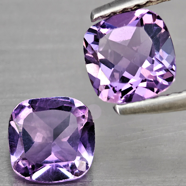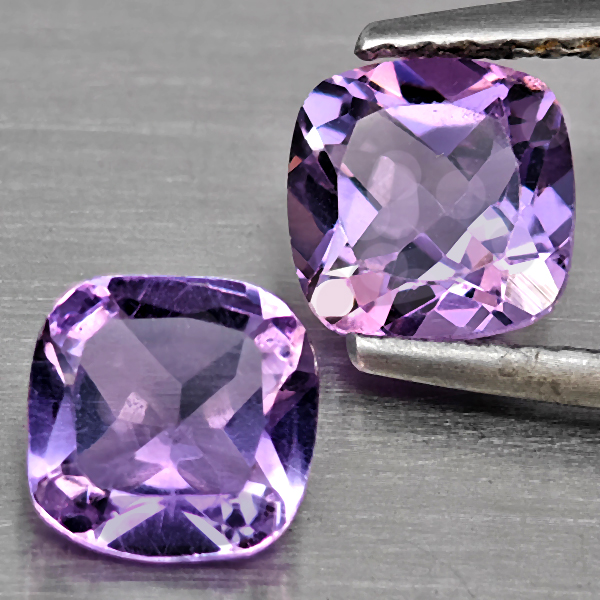 Natural Purple Amethyst 1.55 Ct. 2 Pcs Cushion Shape 6.2 Mm Gemstone From Brazil