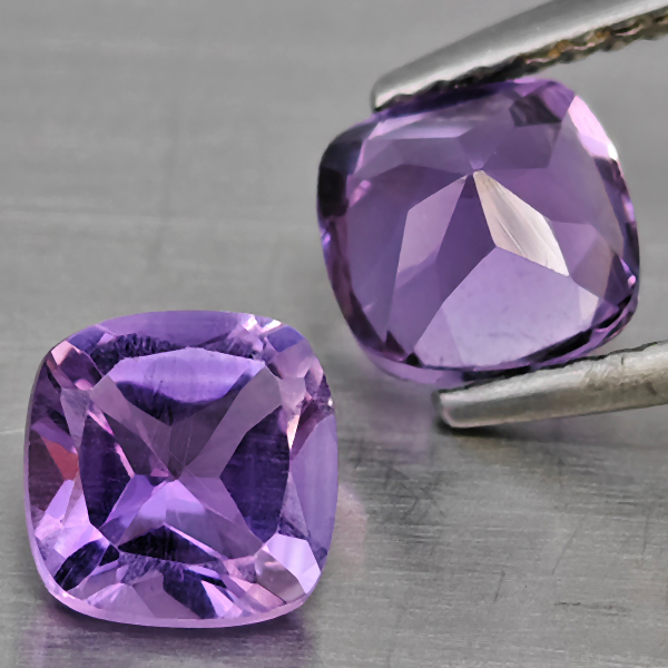 Natural Purple Amethyst 1.75 Ct. 2 Pcs Cushion Shape 6.2 Mm Gemstone From Brazil