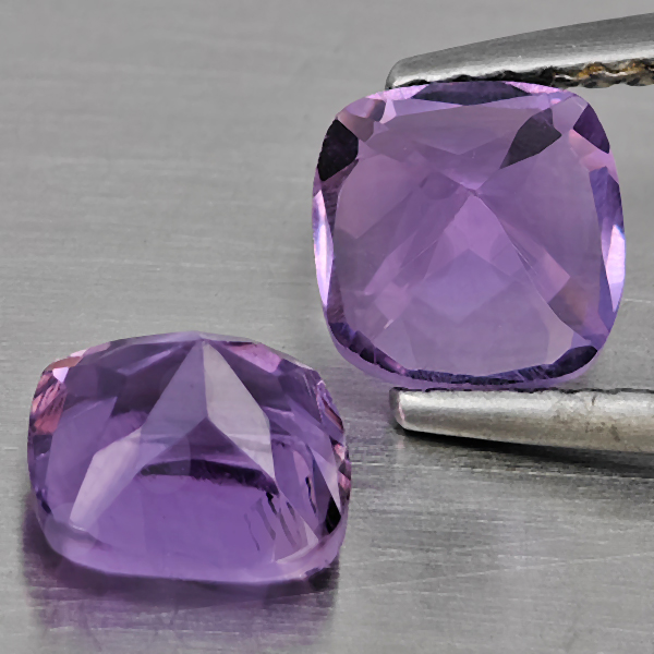 Natural Purple Amethyst 1.94 Ct. 2 Pcs Cushion Shape 6.2 Mm Gemstone From Brazil