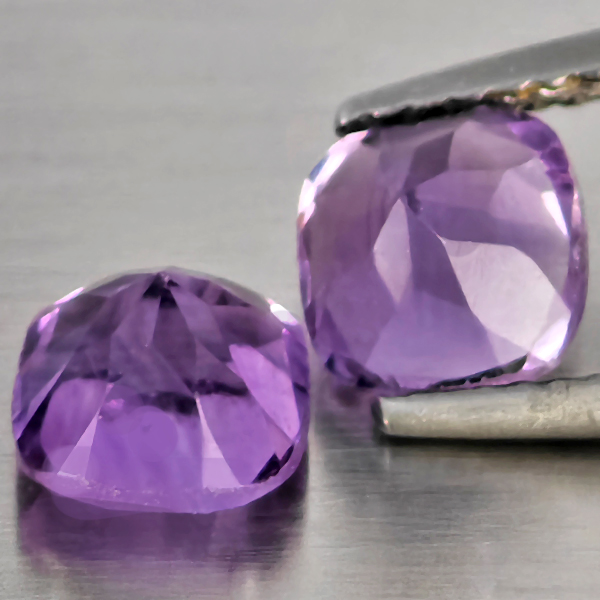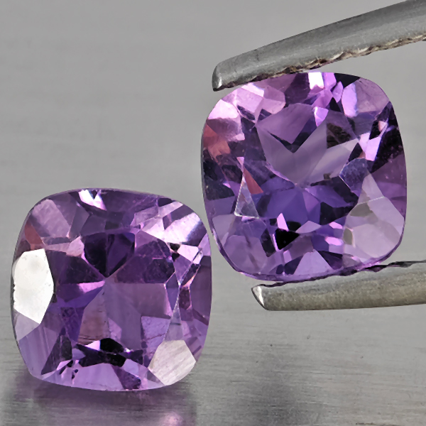Natural Purple Amethyst 1.19 Ct. 2 Pcs Cushion Shape 6.1 Mm Gemstone From Brazil
