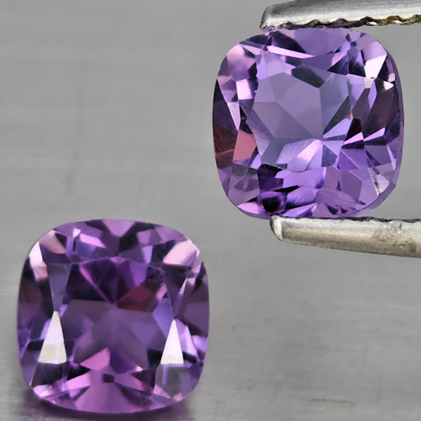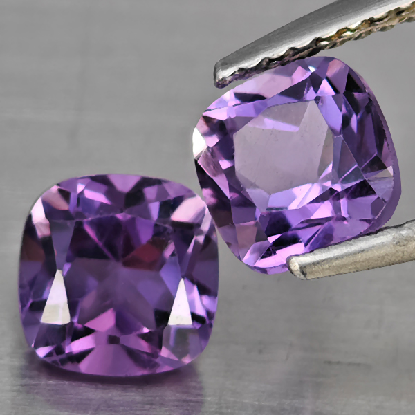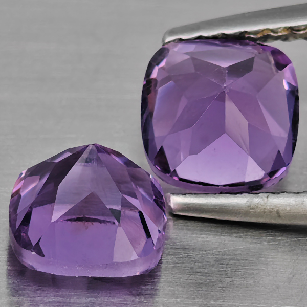 Natural Purple Amethyst 2.23 Ct. 2 Pcs Cushion Shape 6.3 Mm Gemstone From Brazil
