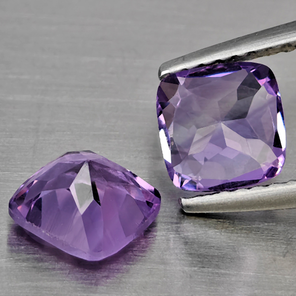 Natural Purple Amethyst 1.19 Ct. 2 Pcs Cushion Shape 6.1 Mm Gemstone From Brazil