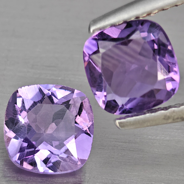 Natural Purple Amethyst 1.55 Ct. 2 Pcs Cushion Shape 6.2 Mm Gemstone From Brazil