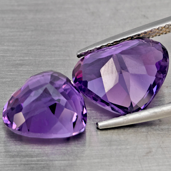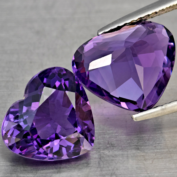 Natural Purple Amethyst 7.69 Ct. 2 Pcs Heart Shape 11.5 x 10.5 Mm Gemstone From Brazil