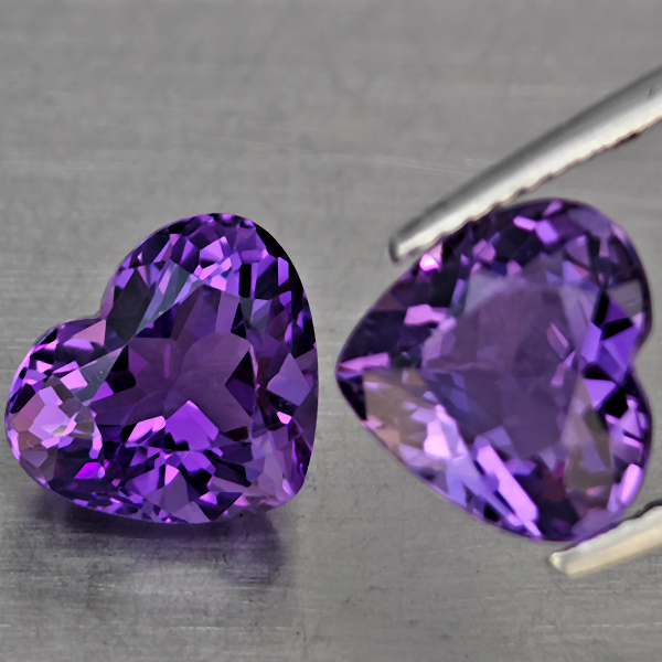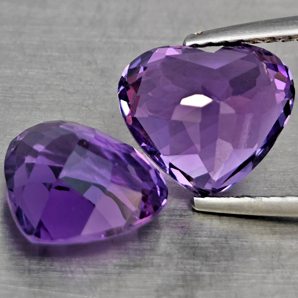 Natural Purple Amethyst 5.49 Ct. 2 Pcs Heart Shape 9.7 x 9 Mm Gemstone From Brazil