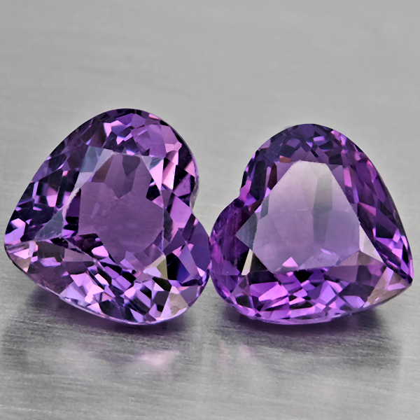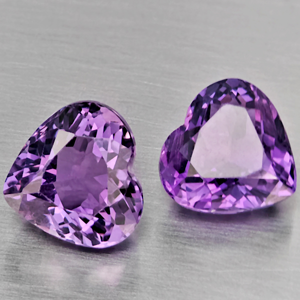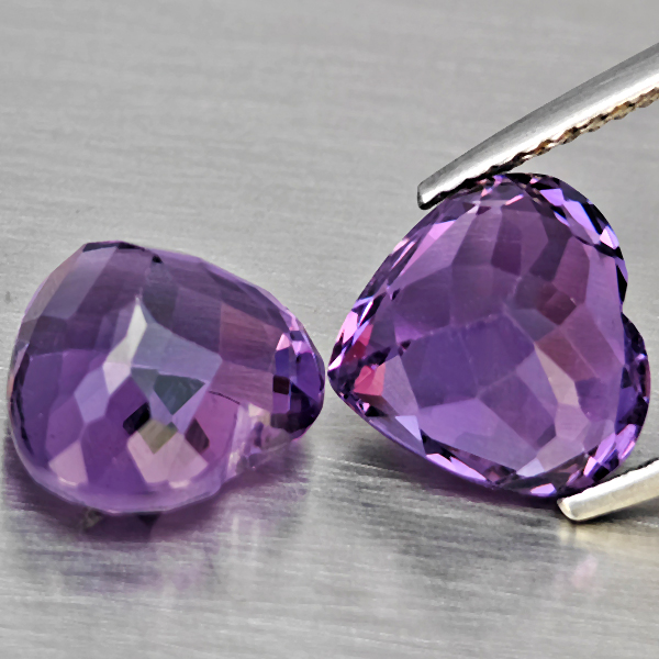 Natural Purple Amethyst 6.57 Ct. 2 Pcs Heart Shape 10.1 x 9.4 Mm Gemstone From Brazil
