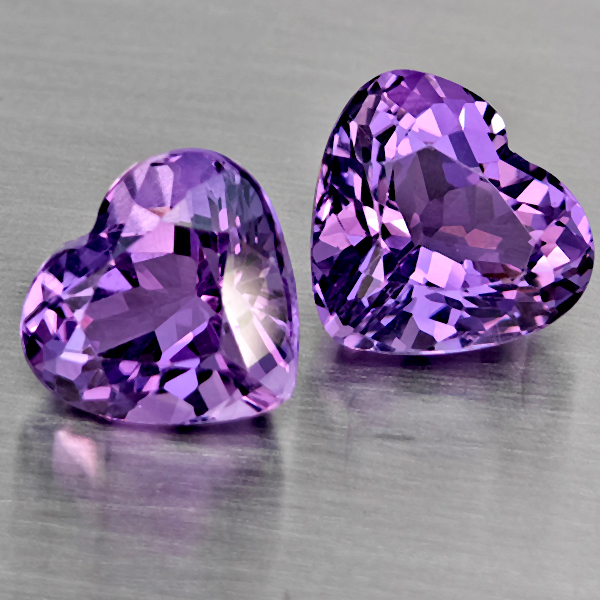 Natural Purple Amethyst 5.60 Ct. 2 Pcs Heart Shape 9.4 x 8.6 Mm Gemstone From Brazil