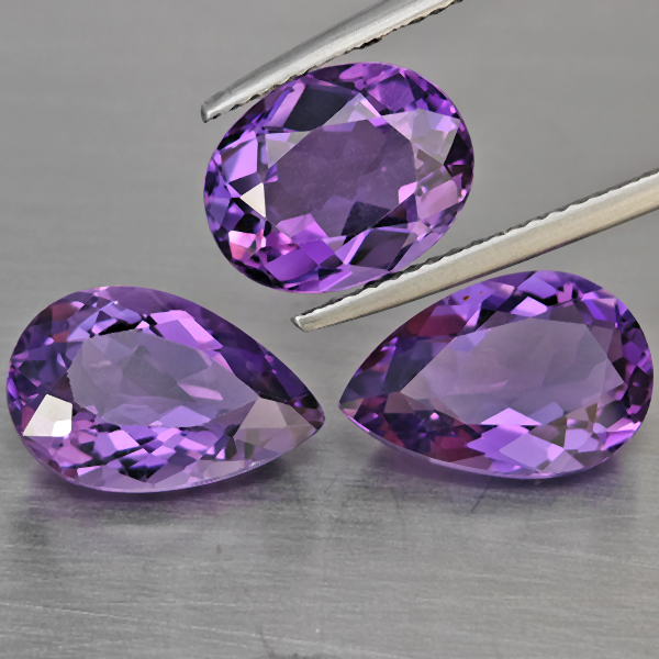 Natural Purple Amethyst 10.30 Ct. 3 Pcs Mixed Shape Gemstone From Brazil