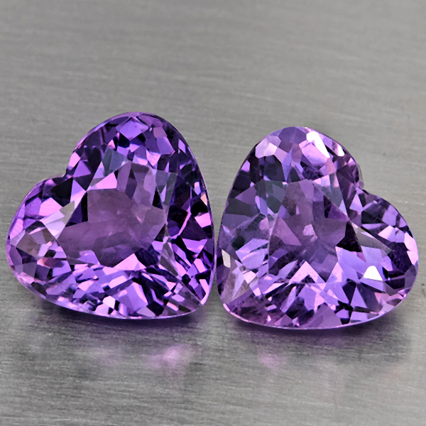Natural Purple Amethyst 6.74 Ct. 2 Pcs Heart Shape 10.6 x 10 Mm Gemstone From Brazil