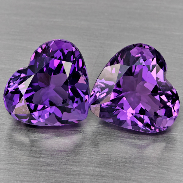Natural Purple Amethyst 6.32 Ct. 2 Pcs Heart Shape 10 x 9.3 Mm Gemstone From Brazil
