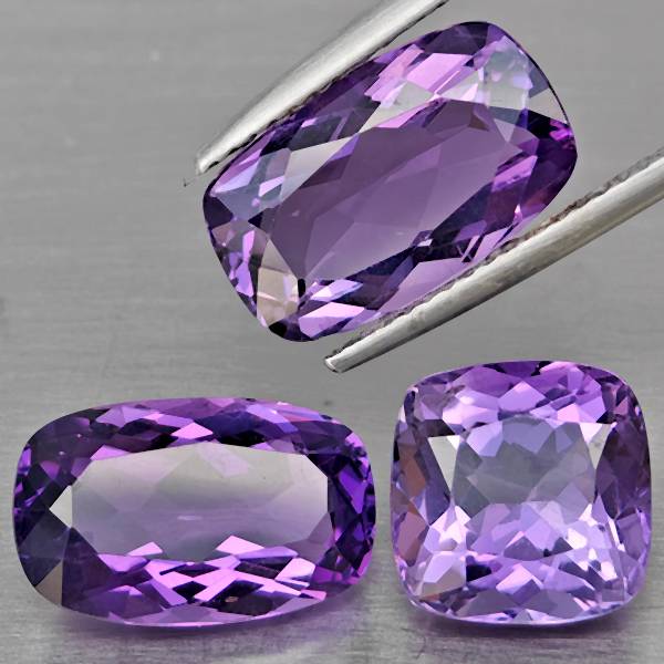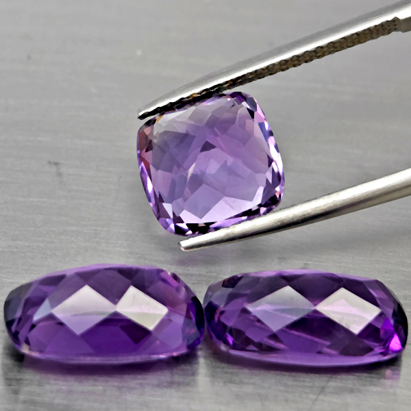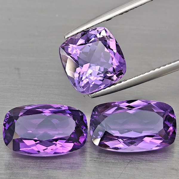 Natural Purple Amethyst 11.91 Ct. 3 Pcs Cushion Shape Gemstone From Brazil