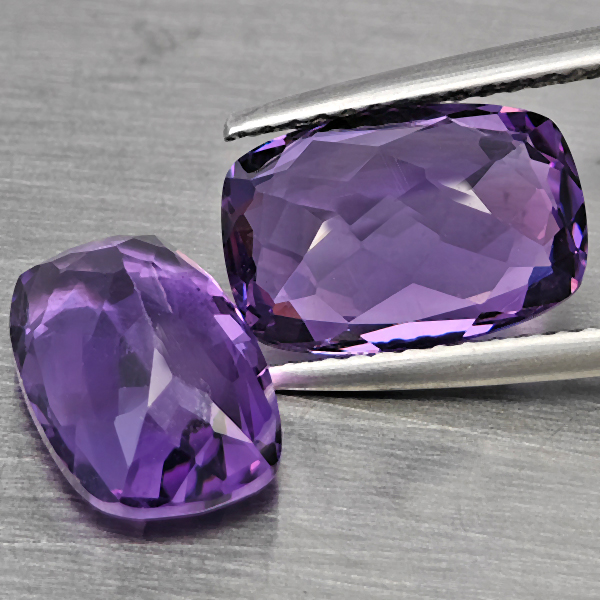 Natural Purple Amethyst 6.01 Ct. 2 Pcs Cushion Shape 11.2 x 7.5 Mm Gemstone From Brazil