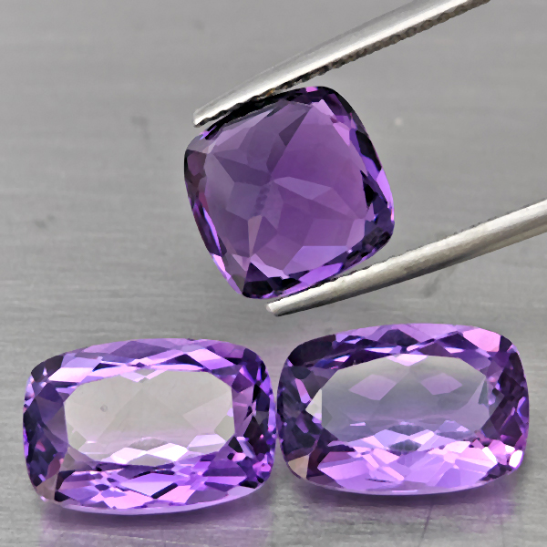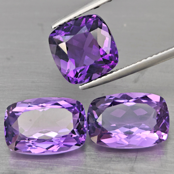 Natural Purple Amethyst 11.84 Ct. 3 Pcs Mixed Shape Gemstone From Brazil