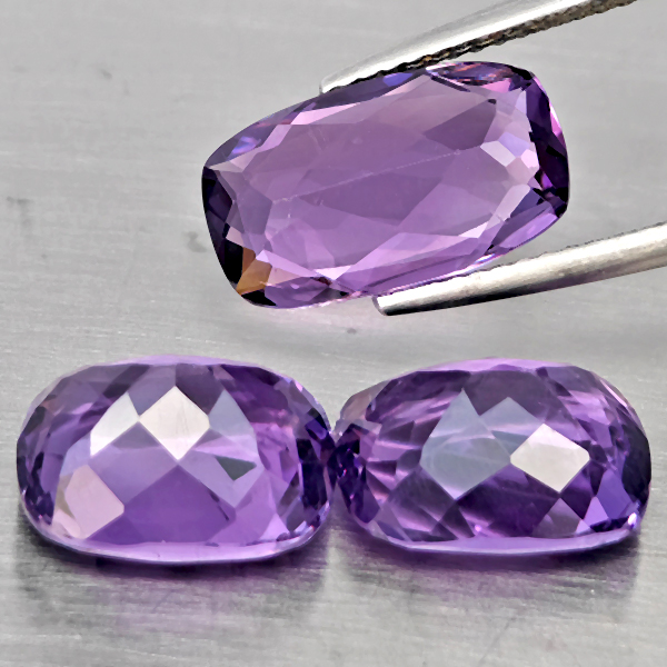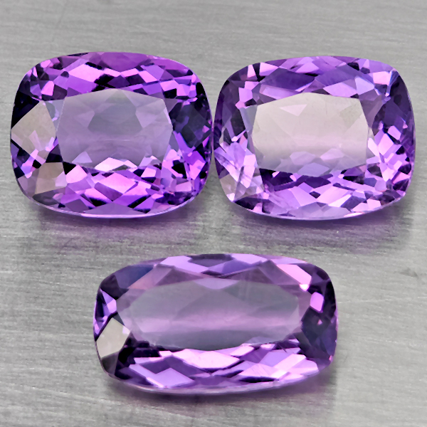 Natural Purple Amethyst 10.98 Ct. 3 Pcs Cushion Shape Gemstone From Brazil