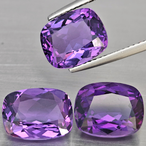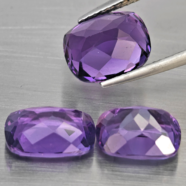 Natural Purple Amethyst 10.47 Ct. 3 Pcs Cushion Shape Gemstone From Brazil