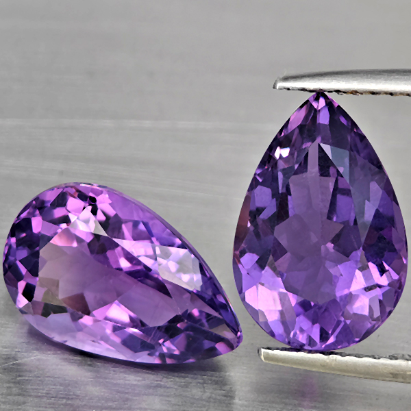 Natural Purple Amethyst 8.45 Ct. 2 Pcs Pear Shape 13.3 x 9.1 Mm Gemstone From Brazil