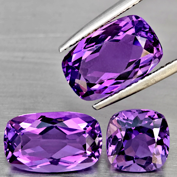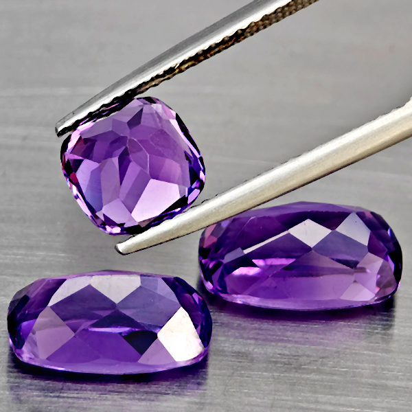 Natural Purple Amethyst 9.10 Ct. 3 Pcs Cushion Shape Gemstone From Brazil