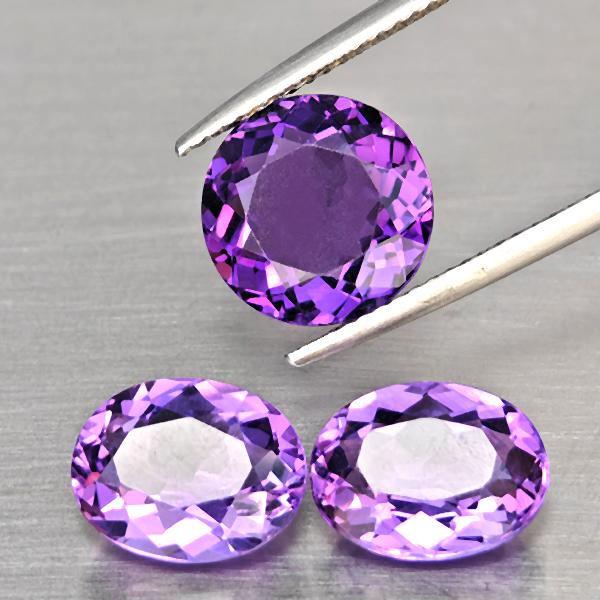 Natural Purple Amethyst 12.71 Ct. 3 Pcs Mixed Shape Gemstone From Brazil