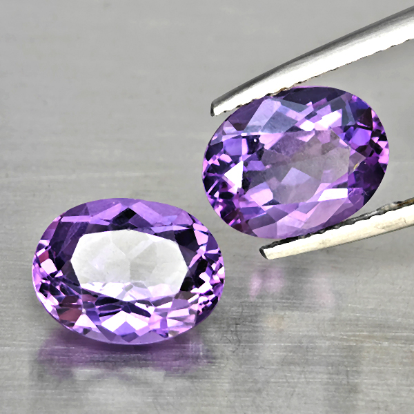 Natural Purple Amethyst 5.29 Ct. 2 Pcs Oval Shape 10.4 x 8.1 Mm Gemstone From Brazil