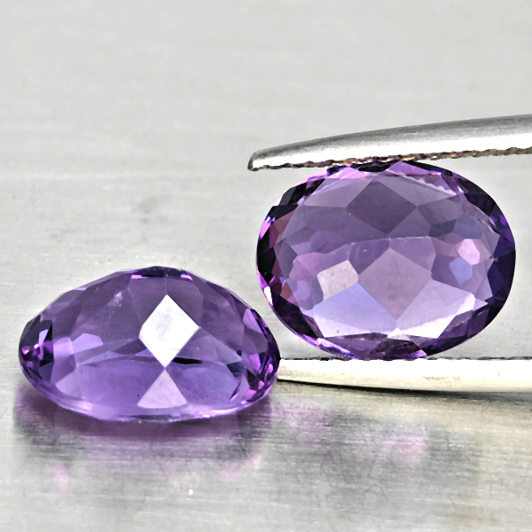 Natural Purple Amethyst 8.25 Ct. 2 Pcs Oval Shape 11.5 x 9.4 Mm Gemstone From Brazil
