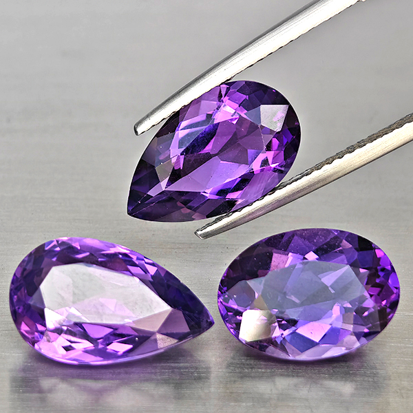 Natural Purple Amethyst 11.30 Ct. 3 Pcs Mixed Shape Gemstone From Brazil