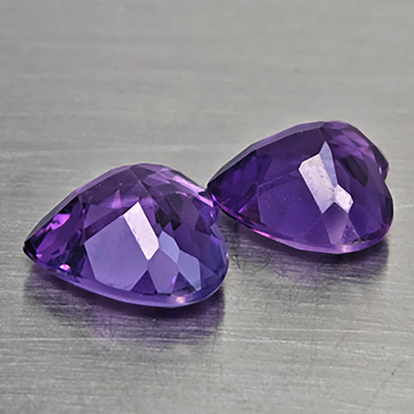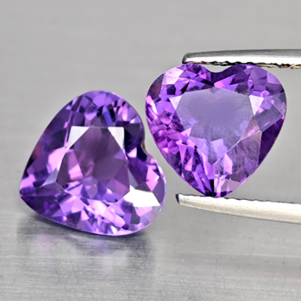 Natural Purple Amethyst 6.54 Ct. 2 Pcs Heart Shape 10.3 x 10 Mm Gemstone From Brazil