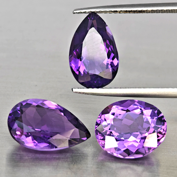 Natural Purple Amethyst 11.52 Ct. 3 Pcs Mixed Shape Gemstone From Brazil