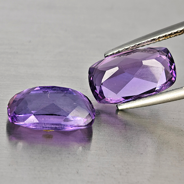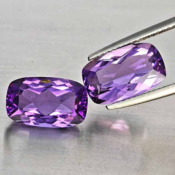 Natural Purple Amethyst 6.93 Ct. 2 Pcs Cushion Shape 12.5 x 7.6 Mm Gemstone From Brazil