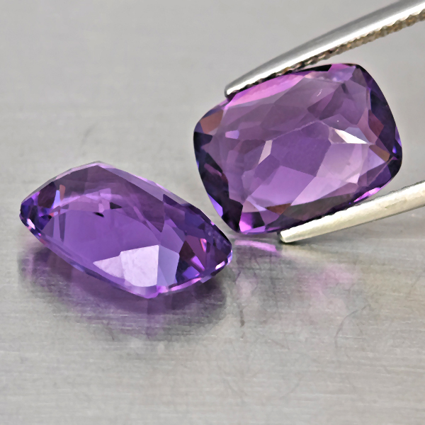 Natural Purple Amethyst 8.63 Ct. 2 Pcs Cushion Shape 13 x 9 Mm Gemstone From Brazil
