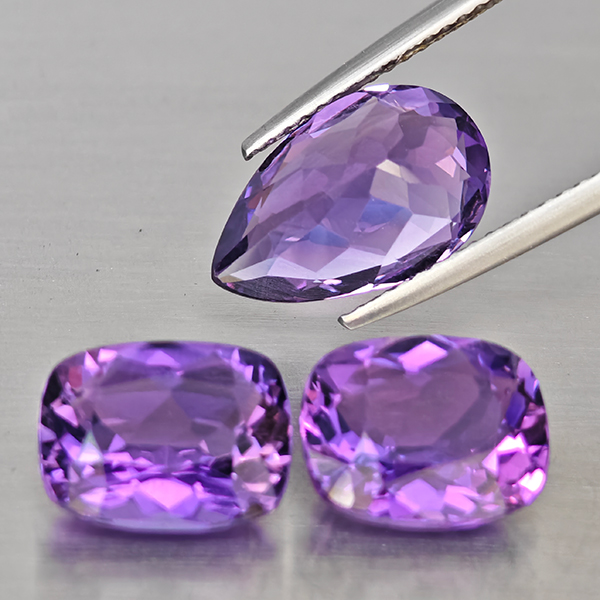 Natural Purple Amethyst 9.39 Ct. 3 Pcs Mixed Shape Gemstone From Brazil