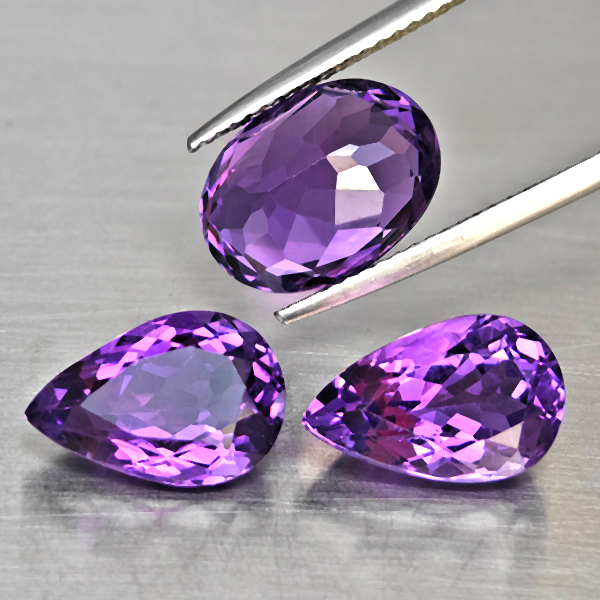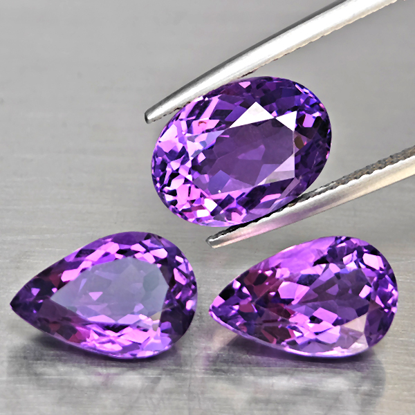 Natural Purple Amethyst 8.31 Ct. 3 Pcs Mixed Shape Gemstone From Brazil