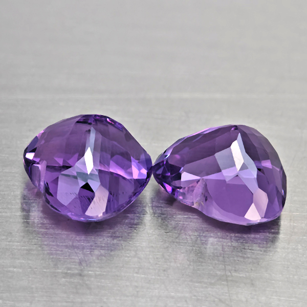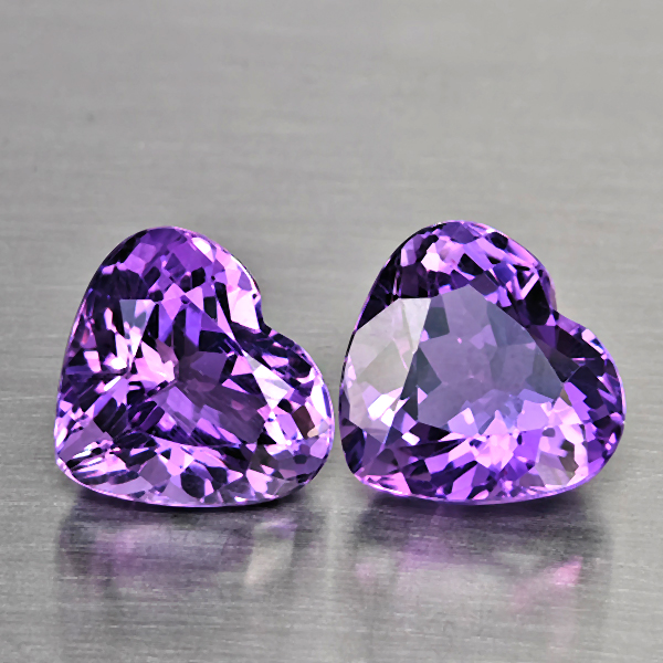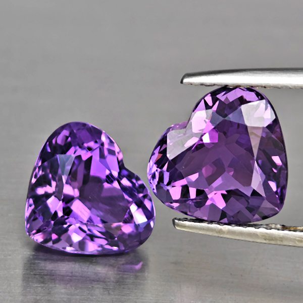 Natural Purple Amethyst 7.57 Ct. 2 Pcs Heart Shape 10.7 x 10 Mm Gemstone From Brazil