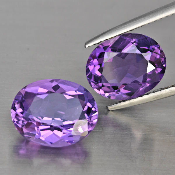 Natural Purple Amethyst 7.26 Ct. 2 Pcs Oval Shape 11.6 x 9.5 Mm Gemstone From Brazil