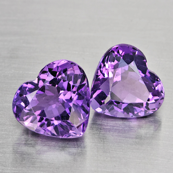 Natural Purple Amethyst 5.54 Ct. 2 Pcs Heart Shape 9.5 x 8.8 Mm Gemstone From Brazil